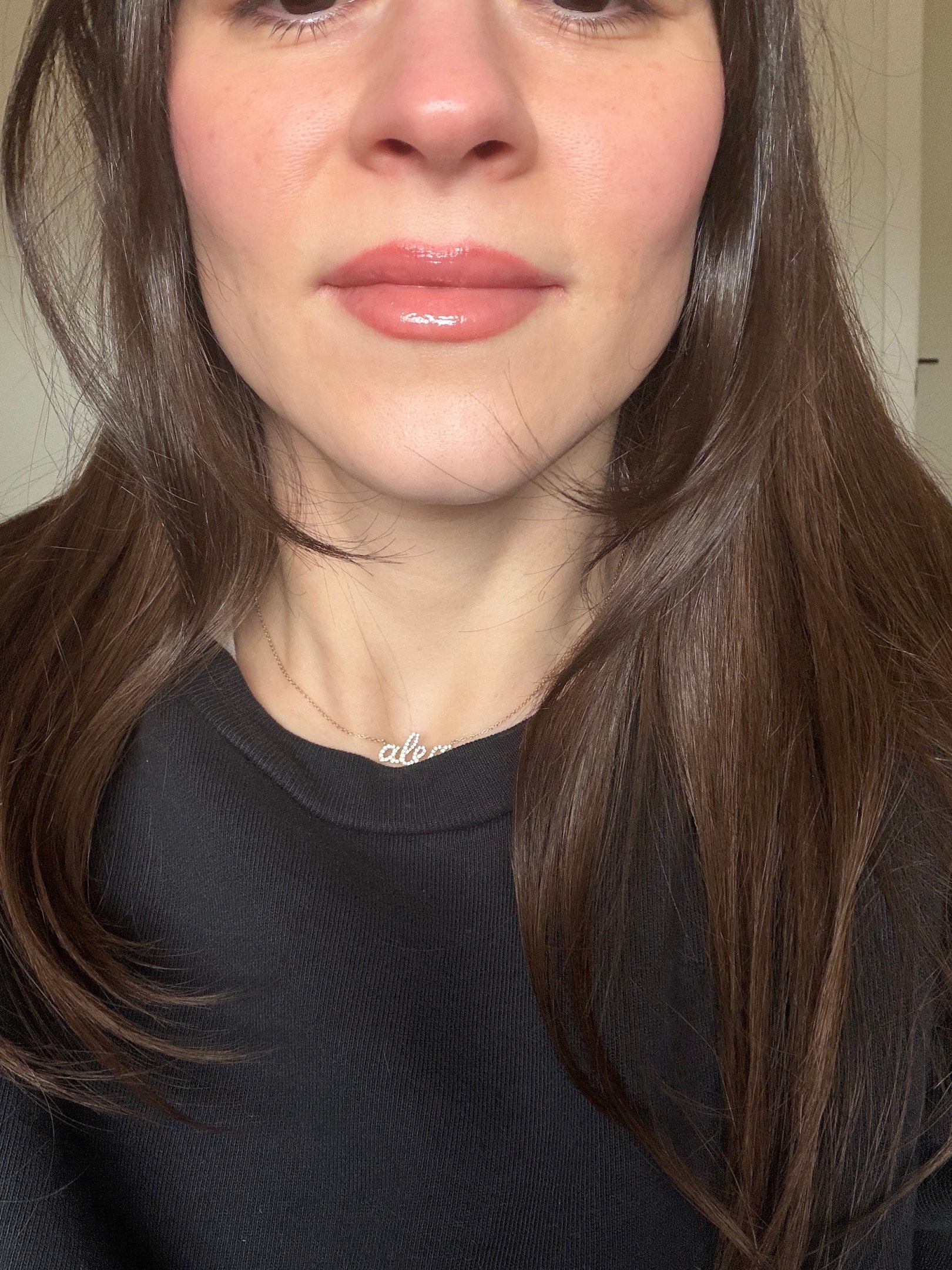 I lightly overline only the center of my top and bottom lips, then blend the liner inward before applying gloss. This keeps the shape natural and even while making the lips appear fuller.