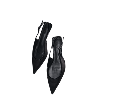 Not sky-high stilettos, not sneakers — the 2–3 cm heel that makes a clink on the floor but still lets you move like a normal person. They look right with straight-leg jeans, slip skirts, and easy dresses.