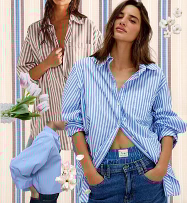 A crisp striped shirt has quietly become the new “hosting uniform.” It’s structured but relaxed, looks good half-tucked into jeans or trousers, and feels intentional without being styled to death.