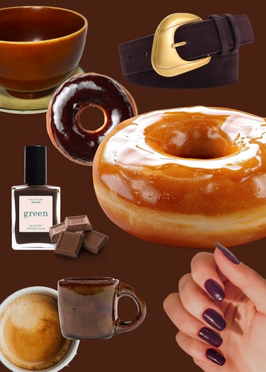 Not “coffee influencer” energy — more the way a deep, almost-black brown keeps showing up in outfits, nails, and tiny objects.
