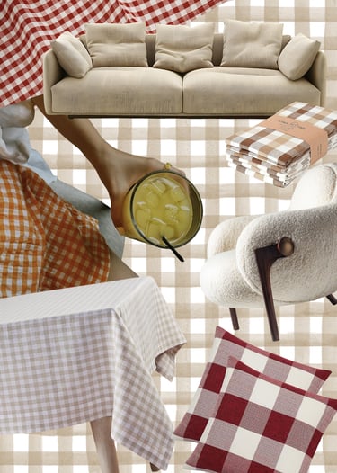 Gingham is everywhere again, but the version I like is contained: one tablecloth, one pillow, one towel. Not a full themed room.