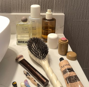 The Vanity Edit: A curated inventory of my daily essentials featuring La Bonne Brosse, Rhode, and Phlur. The things that stay on the counter.