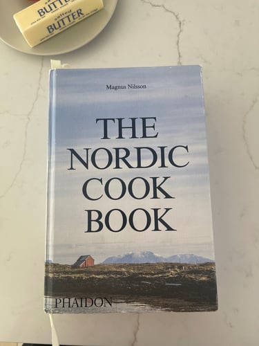 The Nordic Cookbook by Magnus Nilsson I bought at my local thrift store and a honey + handmade whipped cream toast in bed while it snows outside. xo